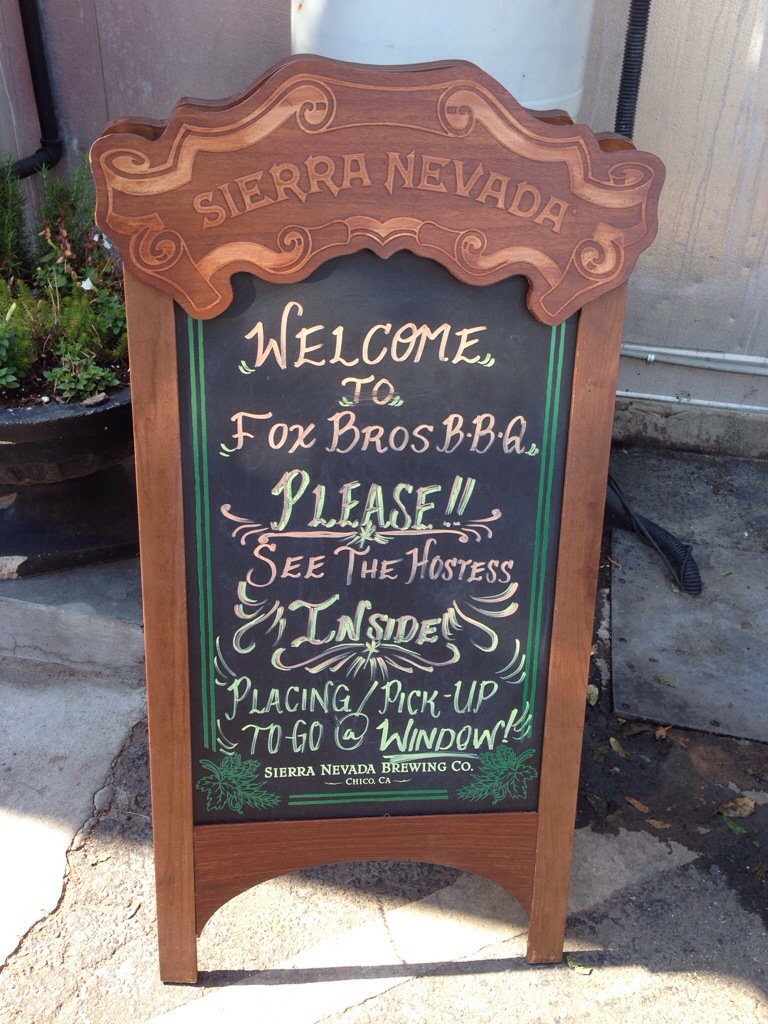 Heading downtown to a show at the Fox, we were planning on an early dinner and I wasn’t sure where to go.  In the process of deciding, I realized that I’d never written about Fox Bros. Bar-B-Q.  Decision made.  I’m sure most that will read this know the story of the Fox brothers, but just in case: they started barbecuing in 2000, at home, trying to re-create the barbecue that reminded them of their home in Texas.  In 2004, they started serving the barbecue on Wednesdays, then Wednesday / Saturdays / Sundays, then everyday at Smith’s Olde Bar.  In 2007, they opened their own place and it continually receives accolades for the quality of the barbecue.  I’ve probably eaten there a dozen or more times in the last six years (including a marvelous Christmas Eve run two or three years ago when I saw on Twitter what the day’s specials were).  In the storm of 2012, they lost part of the restaurant to a tree, but it came back stronger than ever, with the massive porch you see in the picture above.