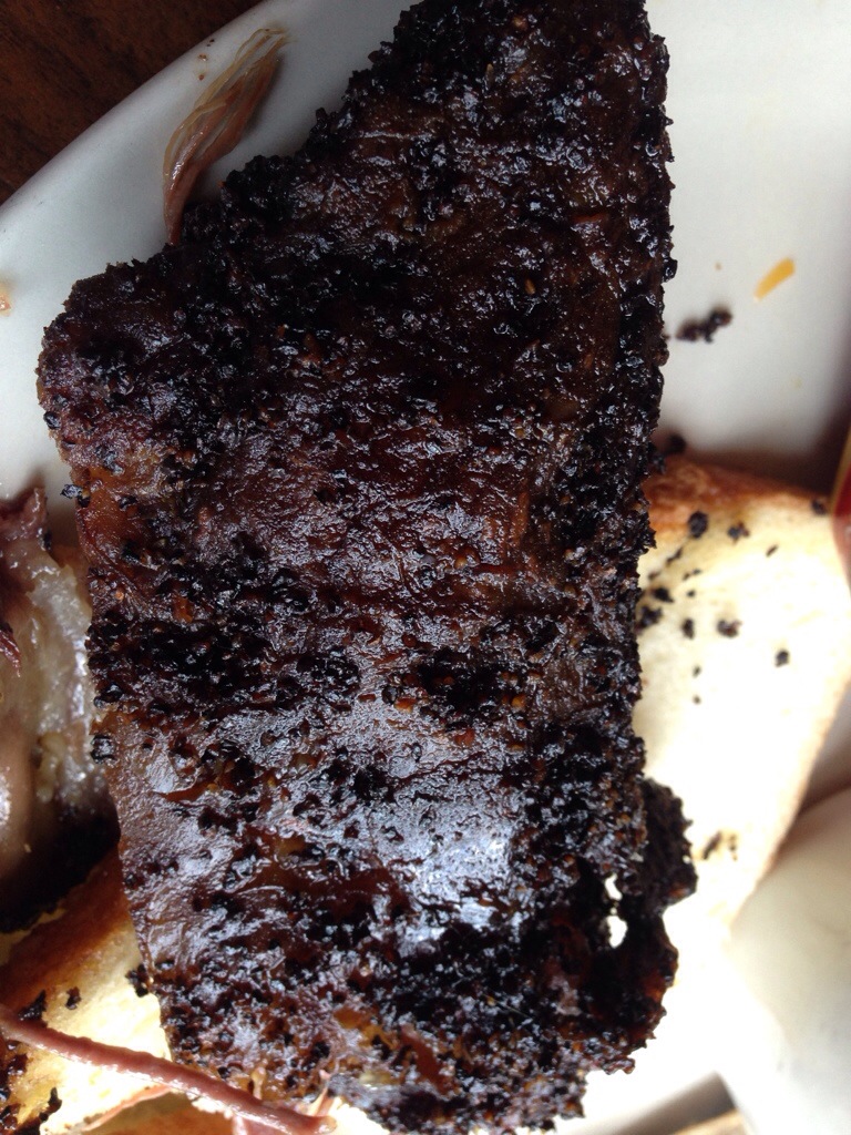 The three smoked ribs are battered, then fried like chicken (hence the name), and arrived with the house white (mayo-based) barbecue sauce, and were excellent.  You do, however, have to be careful when biting into them because you can’t quite tell where the bone is.