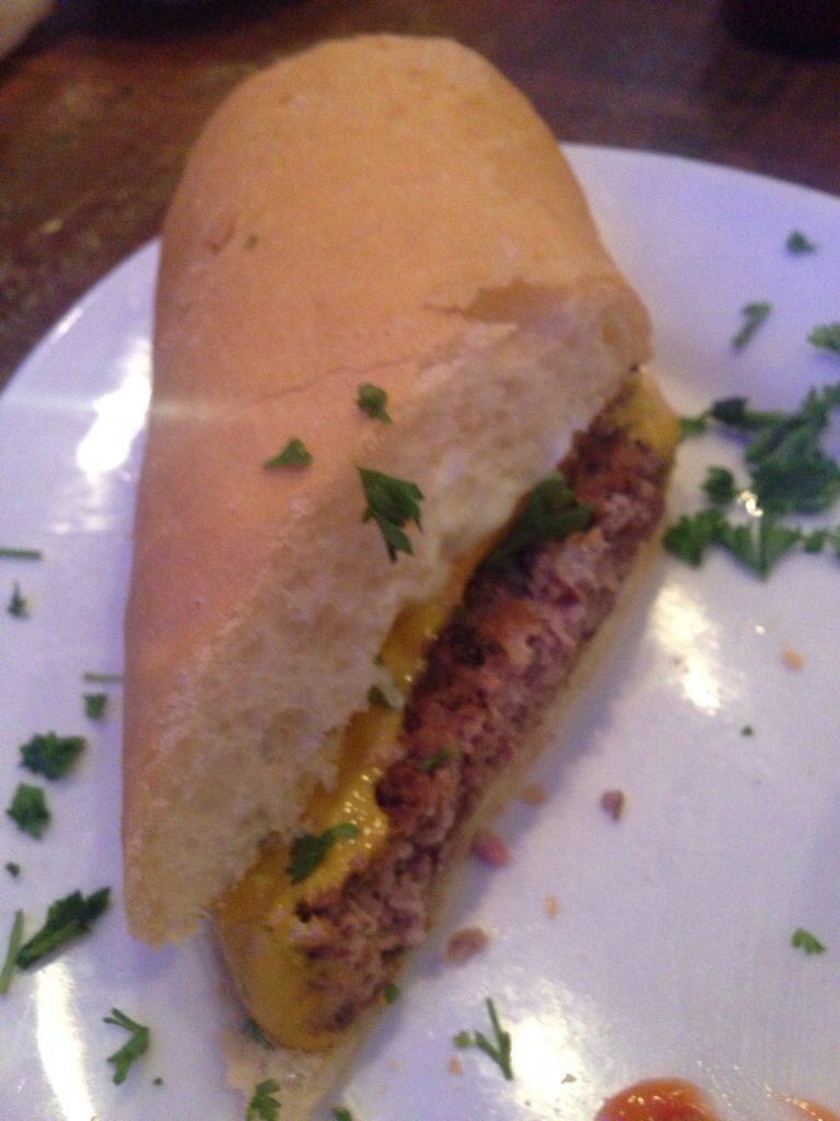 I had the pickles, lettuce and onions held, so I was surprised when I kept tasting onion with every bite. I inspected the burger, making sure there weren’t onions I hadn’t seen underneath the burger or between meat and cheese. I stared closely at the mayo, looking for onion. Then I asked the guys I was eating with if there were onions ground up with the beef and they said, “Absolutely – it’s what makes a New Orleans burger.” Now I know. I guess that I should have read the entire entry in the Hamburger America book before I left home…. It was perfectly fine, but nothing I’ll rush back for.