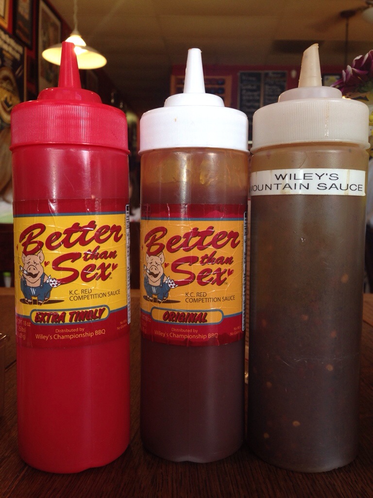I tried to buy a bottle of the Mountain Sauce to take home, but they were still in the production and bottling process on that one, and I was concerned about taking a 16 oz. carry out container home, so I got a bottle of their Better Than Sex sauce instead. (For the record, it isn’t. But it is dang good barbecue sauce.)