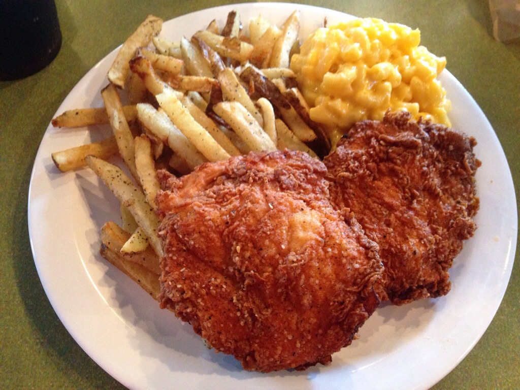 I ordered the local fried chicken entree with two sides, french fries and mac-n-cheese.