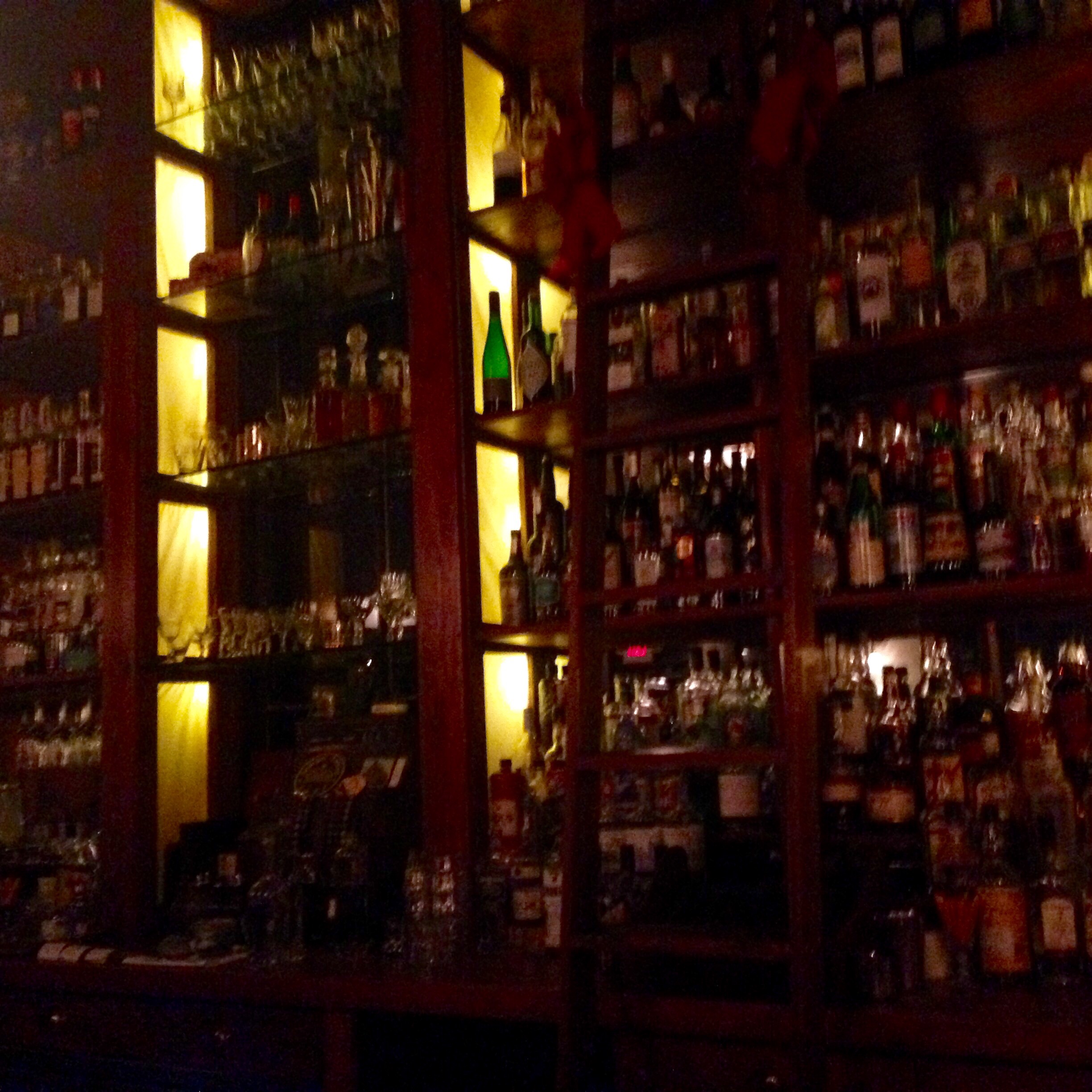 They both had a row of mixables to both their right and left and this giant wall of liquor behind them. Tyson, the bartender at our end, was constantly mixing and moving and shaking the shakers and pouring. It was quite a show. After waiting about fifteen minutes we asked and found that we could order at the bar, so we did.