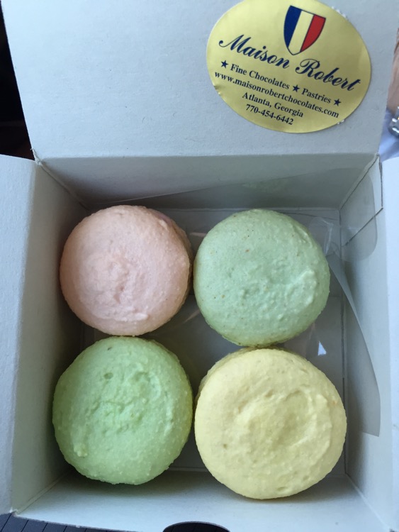 When we went to dinner on New Years Eve at Union Hill, I had noticed Maison Robert Fine Chocolates, just down the street. That night, I had remembered that a friend had told me how good their macaroons were, particularly the coconut ones. So after an afternoon shopping on Chamblee’s “Antique Row”, we stopped in shortly before they closed on this Saturday afternoon. We were greeted by this selection of chocolates,
