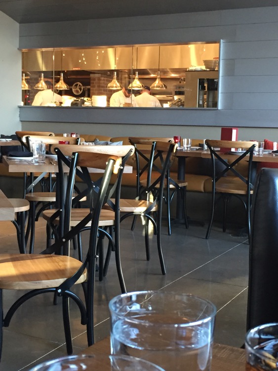 We arrived just after they opened at 5:00 (that was the only spot open for a reservation other than 9:30 on-line) to an empty restaurant that steadily filled up during our meal.  The view above is from the 14th street side of the restaurant, looking north and the view below is the window to the kitchen, which makes up the east wall of the restaurant.  The kitchen has a wheel operated hearth at the left end of the window, very similar to the setup at King & Duke, where much of the cooking occurs.