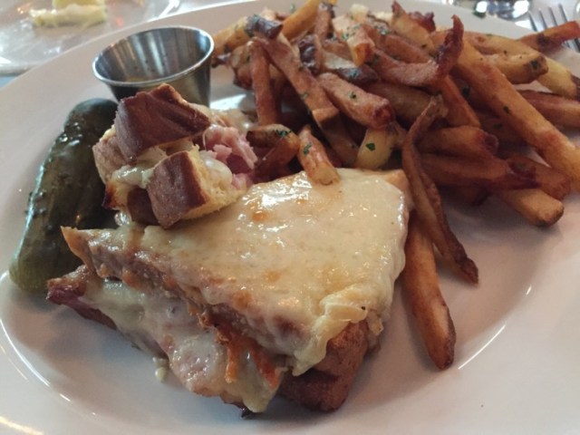 which had a citrus-y butter and was cooked to a medium that you could slice with a butter knife. The frites were excellent, with just the right amount of crunch. I ordered the Croque Monsiuer