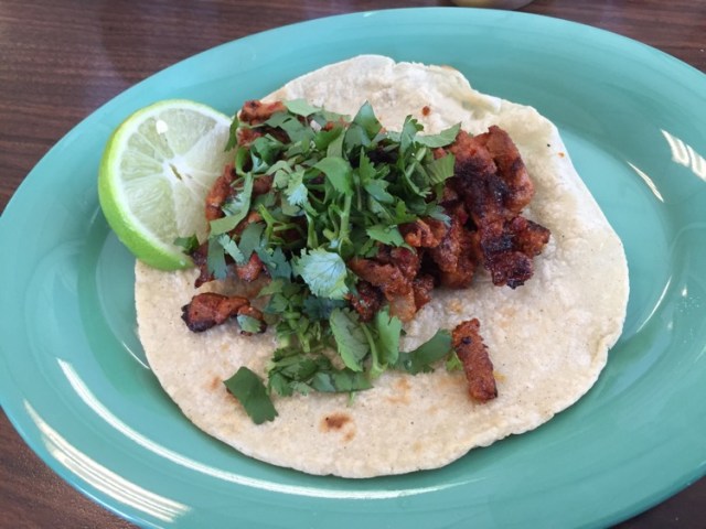 I ordered my taco without onions, but it had plenty of cilantro, along with a lime. Adding a little of the chiles de Diablo sauce and lime juice made for one delicious taco. The pork was crispy and you occasionally found a bite of pineapple.