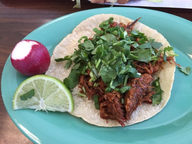 I also ordered a barbacoa de chivo (barbecued goat) taco,