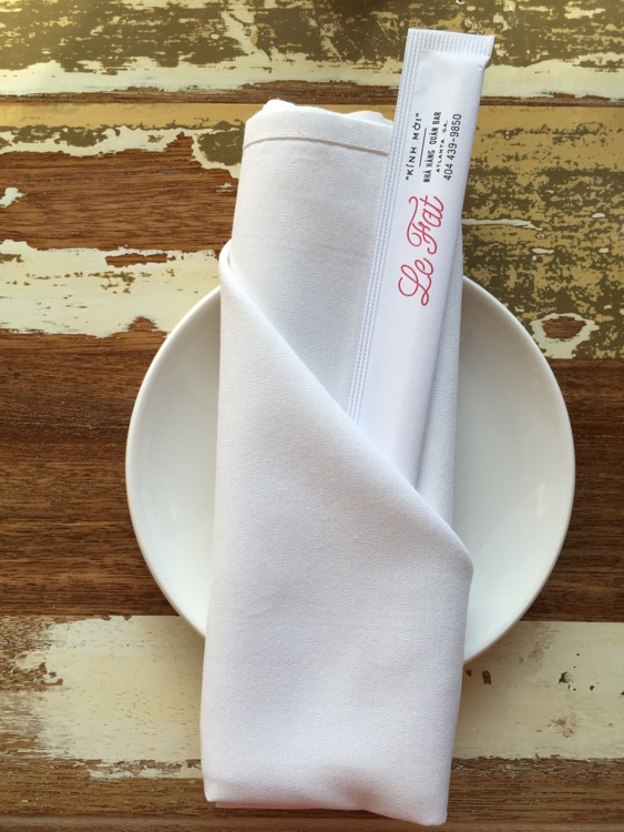 Over the last several months, I’ve been following the prospective opening of Le Fat in the local food press.  Earlier this week, I had seen them appear in the Easter 38 and realized that they were  open (they had opened around the first of April).  This afternoon, as we were wandering through our Saturday, I realized we were going to be heading south on 75, from Woodstock, and would have a chance to give this place a try.  We made a reservation for 5:00, right as they opened, and arrived a few minutes ahead of time.