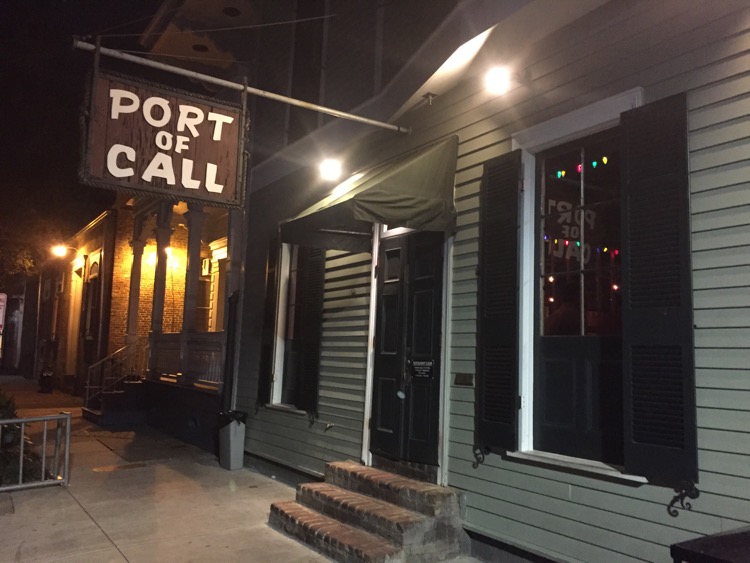 Arriving in New Orleans, fairly late, on Monday evening, and looking for a quick dinner, Hamburger America sent us to Port of Call, a bar (there’s no other word for it) on Esplanade. I called to check their hours, afraid they might close at nine and found that they were only open until midnight, since it was Monday. We were greeted walking in the door by three middle-aged women with 32 ounce “go-cups” looking for a cab. Oh, New Orleans….
