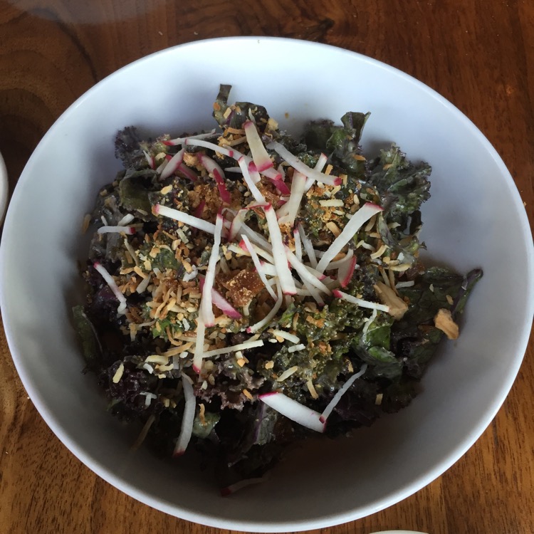The coconut added to the dish considerably. Of the kale salad, I asked, “Is it good?” “Watch it disappear!” was the reply. It did – every single bite.