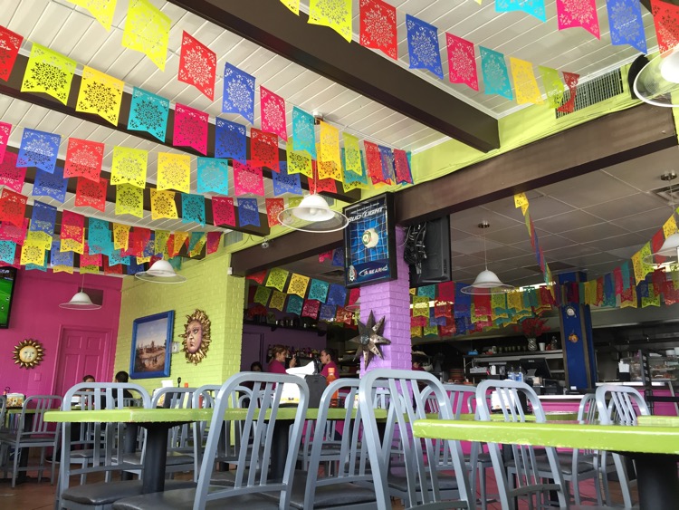 We were seated in the corner of, what was when we arrived, an empty restaurant – while we were there it filled to near capacity. While we perused the large menu, Jo snapped the above photo of the inside of the restaurant. As loud as the picture makes the decor look, would you believe that the music playing through the overhead speaker was even louder? This is a place that is open from 10:00 am to 5:00 am (and 6:00 on Saturday and Sunday). I can only imagine how loud it gets between midnight and closing. We ordered some guacamole to start (which I failed to photo), and combined that with the tabletop salsas for a good start. Jo wasn’t as hungry as I, so she ordered two small chicken tacos,