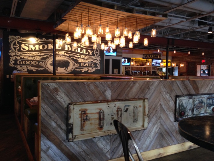 Earlier this week, a lunch for two deal appeared on Travelzoo for Smokebelly BBQ, in Buckhead.  I don’t know that I had heard much about the place, but the deal seemed to be a value (two plates, an appetizer and two non-alcoholic drinks for $29).  Always interested in a deal, particularly when it involves barbecue, I clicked on “purchase” and set it aside for a later date.  This afternoon, we headed into Buckhead for some shopping and, armed with this deal, some barbecue.