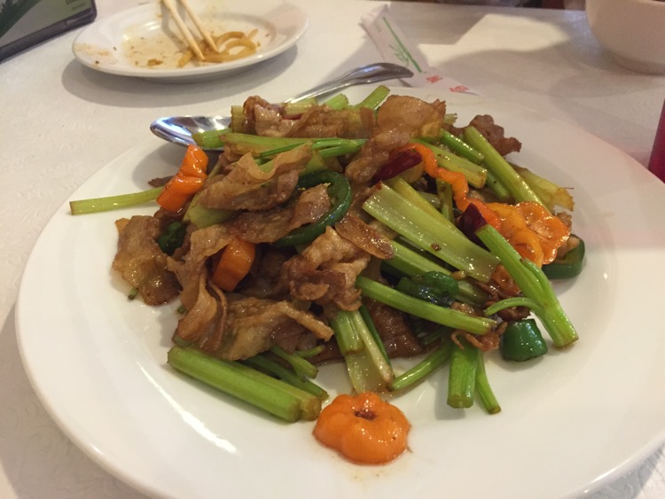 IMG_0546We failed to order the chicken with cellophane and chili, based (mostly) on the name.  I’m fairly certain that it was supposed to read glass noodles, not cellophane.  I guess that name won’t make the new menu…  My table mate on the first visit, ordered the pork with celery and carrots,