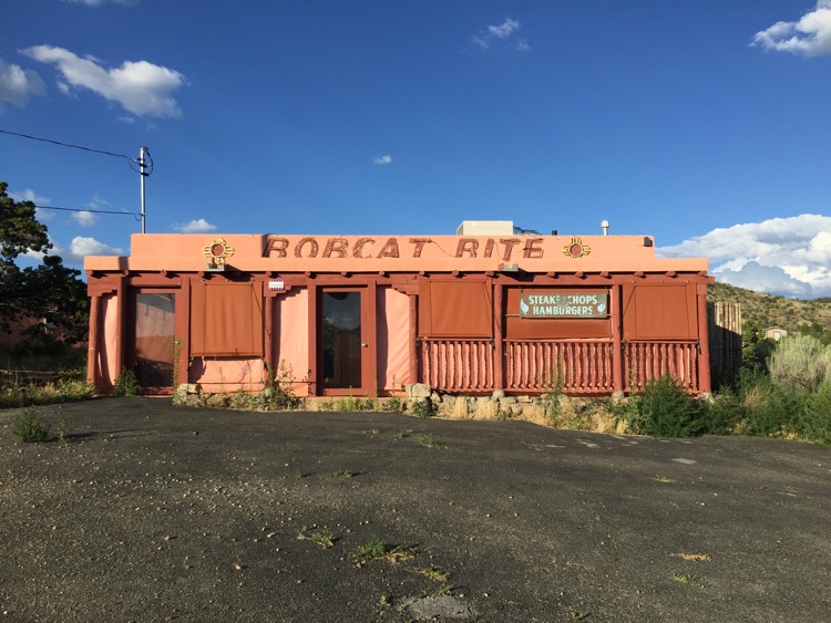 So, the genesis for this blog was my first blog “In Search of the Perfect Burger”, which all began with a meal at Mr. Bartley’s Burger Cottage. While eating there with our girls (roughly on August 5, 2008), I saw a map by the door, from the book Hamburger America. As soon as we got back home, I went on Amazon and bought my first copy, which became my “burger bible”. That first edition had 100 of the best burgers from across the country, according to George Motz. I created a list from that book and began “checking off” burgers, as I traveled for work and on vacation. The only entry in that tome in New Mexico was Bobcat Bite. When we planned to spend the night in Santa Fe, I knew where we were having dinner.