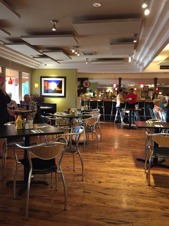 You see – I have this history of showing up at a restaurant on a day they are closed. In fact, it’s a joke in my family (“Dad, are you sure they’re open?”). But my book clearly said that they were open every day except Sunday and that they closed at 7:50 pm (yes, it’s a weird time) and it was only 6:30. But this place was not closed for the day. It was closed! Stools on the counter, grass growing up through the floor on the indoor porch C-L-O-S-E-D. Feeling defeated, I googled to see if the closing was indeed fact. And there I found that the the owners, John and Bonnie Eckre, had opened Santa Fe Bite, inside Garrett’s Desert Inn, in downtown Santa Fe. Back into town we went…