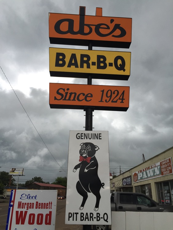 We rolled into Clarksdale, just ahead of a storm that we had driven through for most of the last 100 miles, following us like a “Hellhound on My Trail”.  Driving south through Arkansas into Mississippi, we were going down to the crossroads, hoping to catch Abe’s Bar-B-Q, as opposed to a ride.