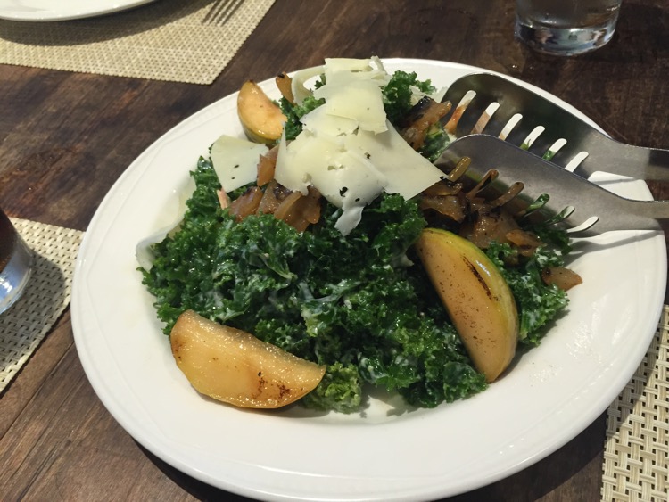 One of the highlights of the meal was our server, Jamar, who seemed to thoroughly enjoy his job. Above is the kale salad, with gala apples, mushrooms, parmigiano reggiano and a boiled dressing. He said that part of the preparation of this salad includes a 20 minute massage of the kale, to make it more tender. This led to a running series of questions about the kale masseuse – did the masseuse do other jobs? What was done to protect those fingers? I don’t care for kale, but I really enjoyed this salad (apples and cheese are such a good mix, particularly here). We all enjoyed it, clearing the plate. Kale yeah!