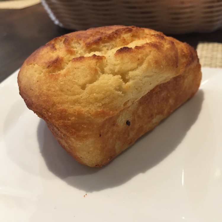 Right before the meal arrived, these little triangles of cornbread arrived. We heard an interview a couple of weeks before the restaurant opened with chef Kevin and he was saying that the cornbread was one of the things he was making from his grandmother’s recipe. The cornbread was moist, like cake, and neither crumbly nor sweet. The honey butter was a perfect complement.