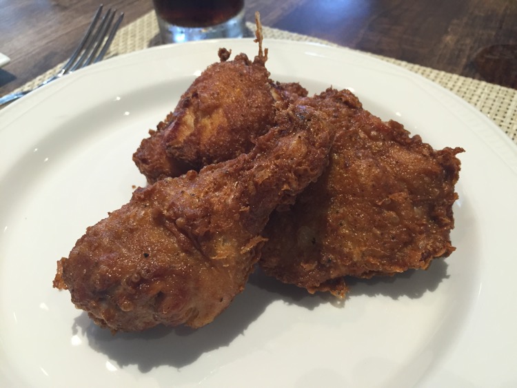 I’m neither a cabbage guy nor big on greens, but the ladies both ate some of these, and the leftovers of each made the trip home for a veggie plate one night later on in the week. The sweet corn was fabulous – we could have eaten two more plate fulls as both plates were scraped clean. The cream and dill sauce on the field peas and butter beans was another family recipe and were different than any peas that I’ve ever had, but were good. For the entrees, we chose three different ones between the four of us. There were two servings of the fried chicken,