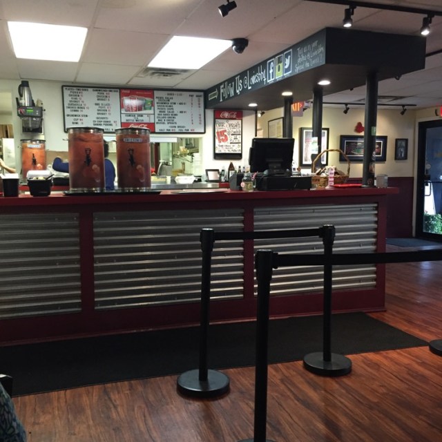 The brisket and pork were both very good and the cornbread served with the meals was the sweet yellow corn bread that I prefer. Both of us commented on the unique flavor of the house sauce (there was only one), particularly noting it’s fruitiness. We talked about what could make it that way and when we queried the lady behind the counter as we left, she did say that there was apple cider vinegar in the sauce. That was it.