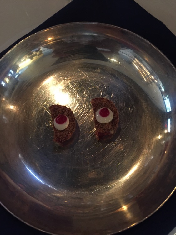 About this time we were telling one of the young men who was talking with us as he served (and dressed like a character from Inglorious Bastards – I incorrectly guessed Percy Fawcett, the explorer in the Lost City of Z) about our history with Staplehouse and how we had followed the story. Mulder came back with the next small bite, that he advised should be eaten in a single bite, to avoid messiness.