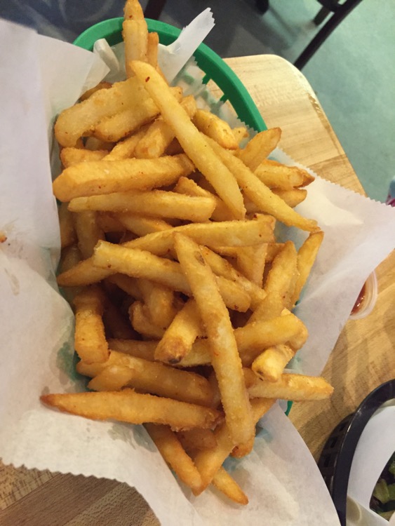 The tacos are generally topped with lettuce, green onion, green cabbage tossed in soy sesame vinaigrette and onions, cilantro, lime and jack cheese. On this visit, I held most of the toppings to get more of the flavor of the meat, but I think I actually liked the tacos on the first visit better. Except for the cilantro, which seems to be excessive on most tacos, these days, to my liking. On the second visit, my beloved ordered the sesame fries as a side.