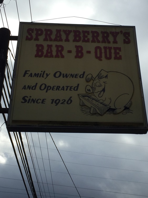 Growing up in the West Atlanta suburbs, we only had one barbecue place that I knew about – Wallace’s in Austell. It was the only one we ate at, and, as a non-driving child, I could only go where I was taken. But, occasionally we made a journey to Harold’s (which closed three+ years back), to Malear’s (which has been closed longer than I remember) or to Sprayberry’s. I’ve eaten at Sprayberry’s several times over the years since, including once at their outpost down by the interstate, but never written about them. Today, as we were leaving Newnan (a suburb half an hour or so southwest of Atlanta), we stopped in for a bite.