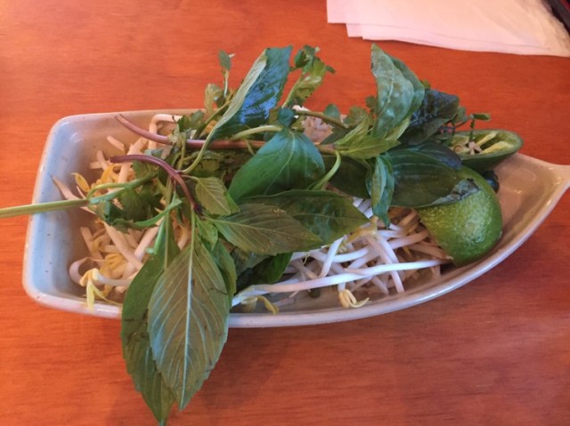 I preferred the chicken, but both were very tasty and amply sized for sharing. And they do not skimp on the peanut sauce. They definitely had more than pho, but I struggled to find what I was looking for: my favorite Vietnamese dish – shaking beef. Ultimately, I googled the dish, found the Vietnamese name for it and showed it to the waiter. He immediately pointed me to the middle bottom of the back of the menu. Success!