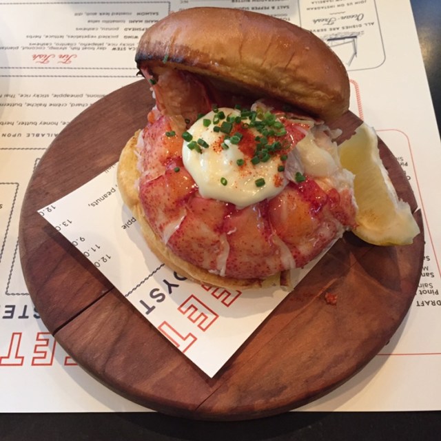 The star of the show arrived next – my loved one’s lobster roll. This was a thing of beauty – a pound plus of perfectly cooked lobster, on a hamburger bun topped with aioli.
