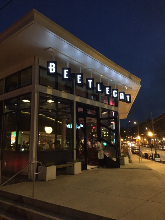 A couple of Fridays back, I saw a tweet from Belle Vivere of the lobster roll from Beetlecat and determined that we needed to get there soon. Seeing that they opened at 3:00 on Saturday, I figured we could wrap up an afternoon of in-town errands with a kind-of-early dinner, and we arrived around 5:30. This was good timing, as the upstairs, where we ate, was fairly empty when we arrived.