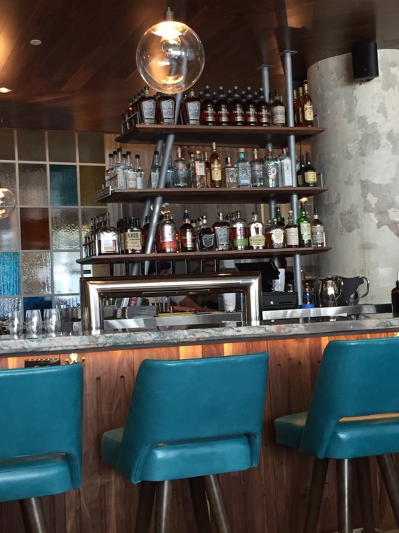 I had seen a note on Eater Atlanta earlier this week noting that the Mercury had opened for lunch service in the last couple of weeks. From the team behind Decatur’s Pinewood Tippling Room, the Mercury (with a decor resembling the early 60s) is on the second floor of Ponce City Market and features a menu focusing on steaks, chops and seafood. We made a reservation for 1:30 and arrived a few minutes ahead of time. I wondered to myself if the reservation was necessary, but by the time we finished dining the place was filling up. I imagine a reservation would be a necessity at dinner, on a weekend night.