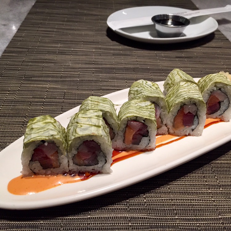 But on this day, I was flying out mid-afternoon and had an hour-plus to spare, post-security. I was seated at one of the two tops in the front section of the restaurant, and perused the menus. Unable to choose, I asked the server for a couple of recommendations and started with the kamikaze roll.