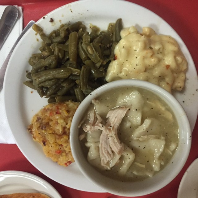 The dumplings were superb, with just the right amount of chewiness. I was surprised, pleasantly, by the jalapeño in the mac-n-cheese, the green beans tasted just like my mom used to make and the corn pudding was perfect.