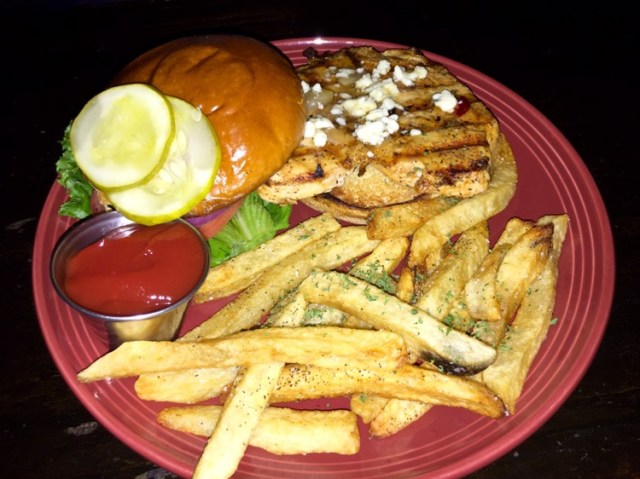 For dinner, my beloved chose the Jam Tart – a marinated and grilled chicken breast, serve with pear chutney, Stilton bleu cheese, lettuce, tomato and sautéed onions, on a brioche bun.