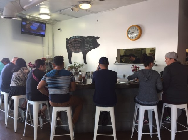 When I was planning our trip, I knew that one morning we’d be starting a day at Matt’s Big Breakfast.  Why not start there, on the first morning?  When we showed up at 8:05 on a Saturday, the place was already packed.  We talked with the host and he said that the 15-20 people waiting were nothing compared to the expected line a little later  – which would stretch down the street to in front of the hotel on the corner.  The wait was surprisingly short – we were seated in less than ten minutes.  One thing that they seem to know how to do is push the people through this place.