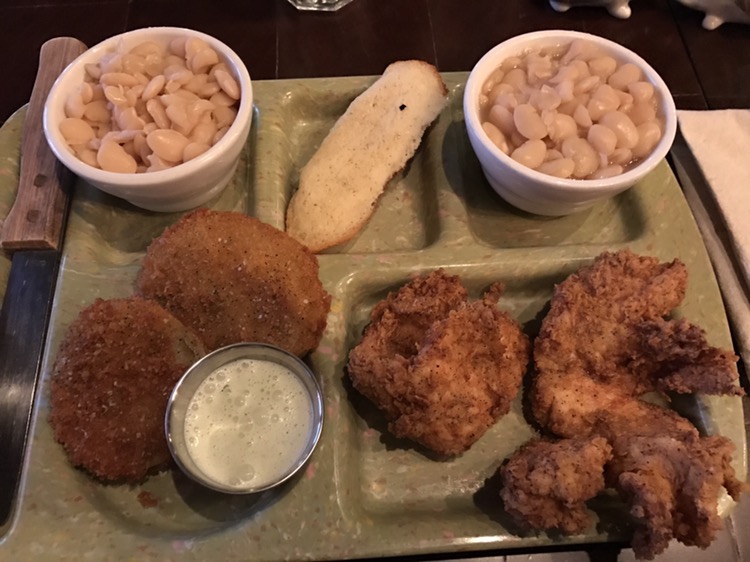 Fried chicken, fried green tomatoes and double black eyed peas for me.