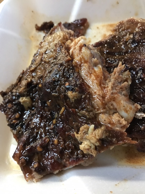 The barbecue had plenty of pepper flakes and was in long strips, with plenty of bark. And look at that bark on the ribs. The sauce was thin, spicy and perfect. The only thing we missed was fresh cracklings – they were out.