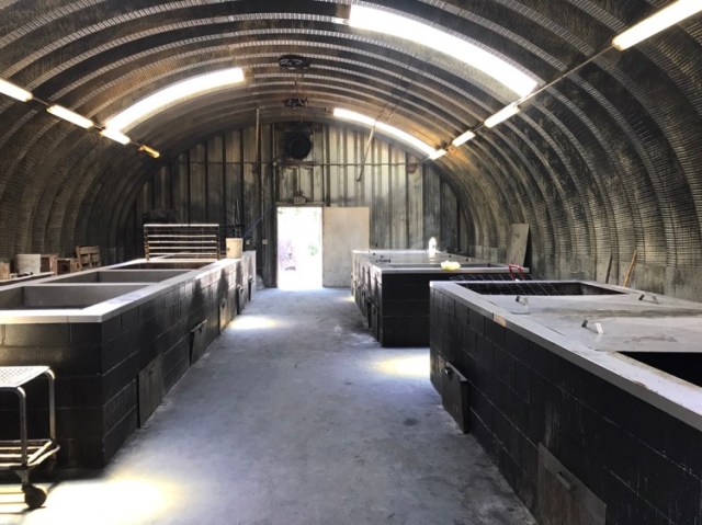 There are enough pits here to smoke fourteen whole hogs. Fourteen whole hogs. They start cooking at five pm for the next day and she said that the number they cooked came from the pitmaster’s estimate. On our Wednesday, they had smoked three. They would have fourteen going, for a couple of days, for the 4th of July holiday coming up.