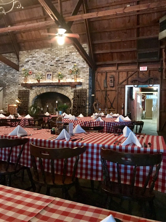 In an article in Garden ‘n Gun about great fried chicken, they mentioned Bennie’s Red Barn, an island staple since 1954. We’d never been, and they took reservations (key for a holiday weekend on the island) so a reservation was made for Saturday night and, in a pouring rain, we set out for dinner. The story goes that Benny was trapped in a French barn for some length of time by the Nazis and, when he came home, and opened a restaurant, he built this replica.