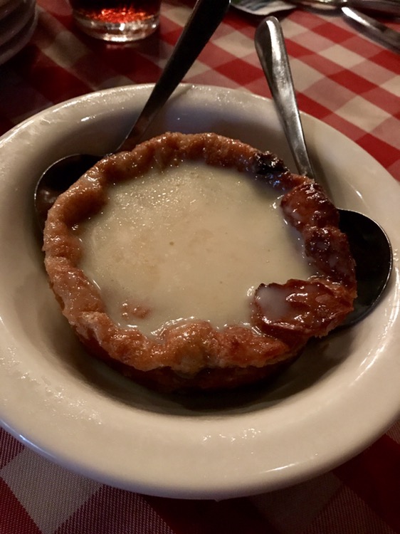 iceberg lettuce, tomatoes and house dressing. Bennie’s is known for steaks (and all the kids had those) which are cooked over an open oak flame – the only restaurant on the island cooking over an actual fire, according to the in house historian who was roaming the tables. And singing. But I was there for the fried chicken. Half a chicken, cooked to order, with a baked potato.
