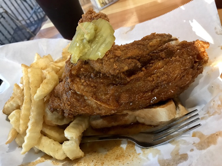 No trip to Nashville, for me, is complete without some hot chicken. We had driven up for the day for the flea market and some roaming around and were getting ready to head back home, as dinner time approached. Prince’s Hot Chicken Shack is the pinnacle for me and we’ve been to the original (Ewing Drive) location many times. It is hard to believe that it has almost been five years since our first visit there. But it’s north on 65, on the way out of the city, and we were headed south on 24, so it wasn’t feasible. Then I remembered they had opened a second location on the southside and I knew where we were headed.