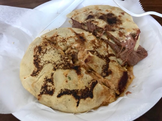 Our youngest daughter turned me onto pupusas, on a visit to the food court at La Fiesta mall. She had become a fan while studying abroad in Costa Rica. And spread the fever on to me. There is also a great Salvadoran place, near my office – Panaderia Elizabeth in Norcross. But having one in Hiram was a completely unexpected pleasure.