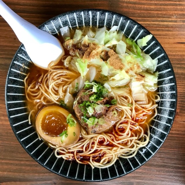 with pulled pork, cabbage and an ajitsuke (soaked in soy) egg. She generally prefers pho to ramen (when given a choice of Asian soups), but was enamored with this bowl. The pulled pork was different than the typical sliced pork (chasu), and absolutely melted in your mouth..