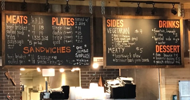 They have two smokers in the screened patio, next to this former Pizza Hut, modeled after those at Franklin Barbecue (in Austin, if you don’t know) – and named Pancho and Lefty (from the Townes Van Zandt song). The inspiration was definitely Texas. It looks like another Texas-style barbecue place. That’s fine – just name it and claim it.