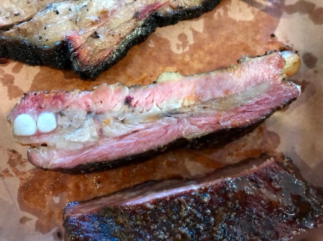and the ribs were tender, with a great charred bark. The bark on the brisket was just as charred and it broke like peanut brittle. The brisket was delicious. The food was actually very good.