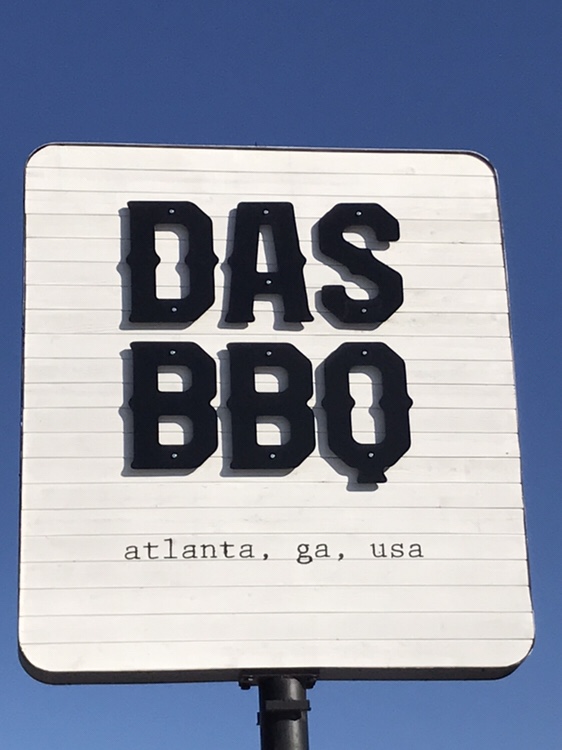 Today, we headed to Das BBQ, after seeing it featured in Atlanta Eats and then getting a confirming positive vote from a lunch mate, yesterday. In all the pre-opening press, owner Stephen Franklin talks about wanting to ” define Georgia barbecue”. I’m not sure how you accomplish that by trying to turn Underwood Hills into East Texas. The food is served on metal trays with brown butcher paper, like most Texas bbq joints. The pictures on the wall inside of are of Texas bbq places – Smitty’s and Lockhart’s and Franklin’s. According to what I’ve read, it is “named in honor of the German and Czech settlers who first brought smoked meats to central Texas.”