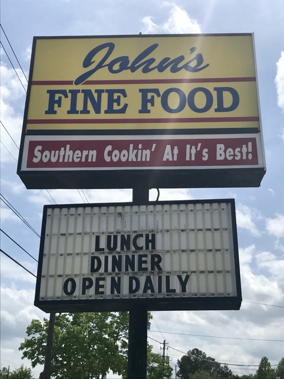 For a (of recently) rare Saturday of roaming the city, we were heading to the Scott’s Antique Market. The State DOT wasn’t cooperating, however, as the exits to both Jonesboro Rd and Moreland Ave, east–bound on 285, were closed with roadwork. We had to sneak up on it, and found several spots to stop, along the way. I had worked up an appetite, so I did a quick search for barbecue and John’s Fine Food came up, with over 600 good reviews on yelp. But not for barbecue – for fried chicken! That worked, too.