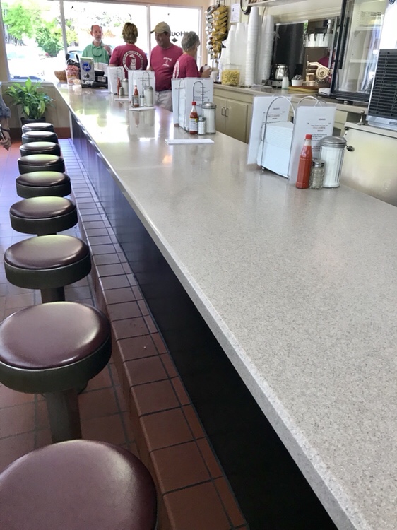 Not to be confused with the excellent Red Bridges, also in Shelby, Alston Bridges Barbecue has also been open for years. But there is no relation between the two restaurants, and their founders – other than that they both learned their craft at the pit of NC legend Warner Starney. Walking into the counter area, we followed the “Seat Yourself” sign (just past the counter service area below) to the dining room in the back and found a spot.