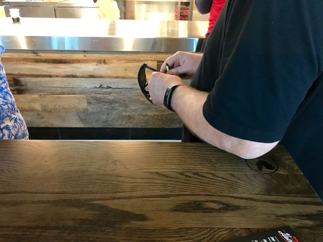 We didn’t intend to meet him – he had ordered carry-out and didn’t understand the concept of personal space. By the time of this photo, I moved out of the seat where his elbow is in this picture – he was standing up against me, while I sat there. Note to future carry-out customers – you might want to not stand and lean on the table of people who are actually eating their meals…