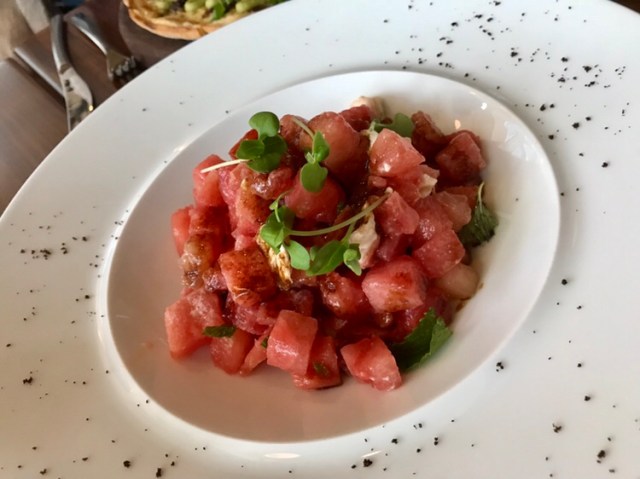 We were so excited about dinner, after we finally decided what we wanted, that we forgot to order the salad we had all been talking about, until our food was almost ready to arrive. But that didn’t deter us from ordering the watermelon and bufalo mozzarella salad – to share for the table, the next time we saw our server.